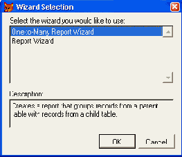 Диалоговое окно для выбора типа создаваемого отчета